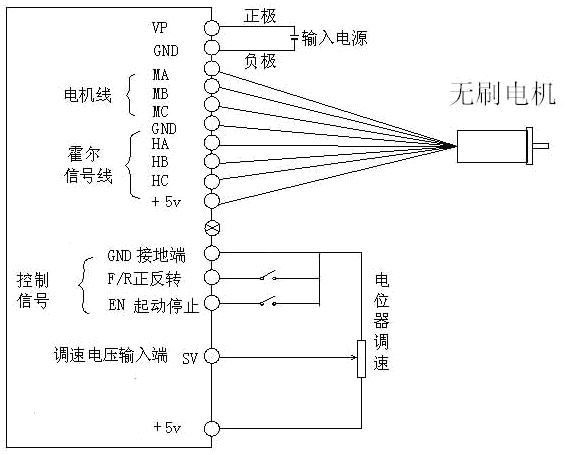 +5V:调速电压输出,可用电位器在SV和GND形成连续可调